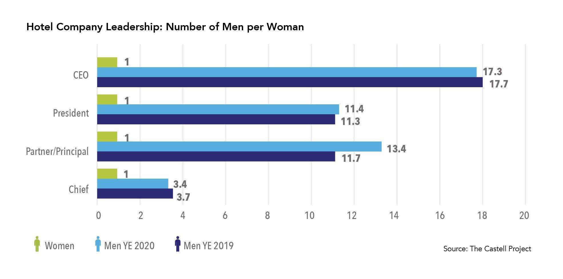 WOMEN AND MINORITIES made very little advancement in the hospitality industry over the last year, according to the fourth Women in Hospitality Industry Leadership report from The Castell Project, a not-for-profit organization that promotes women in the hotel business. The COVID-19 pandemic is the suspected cause of the stifling of diversification.