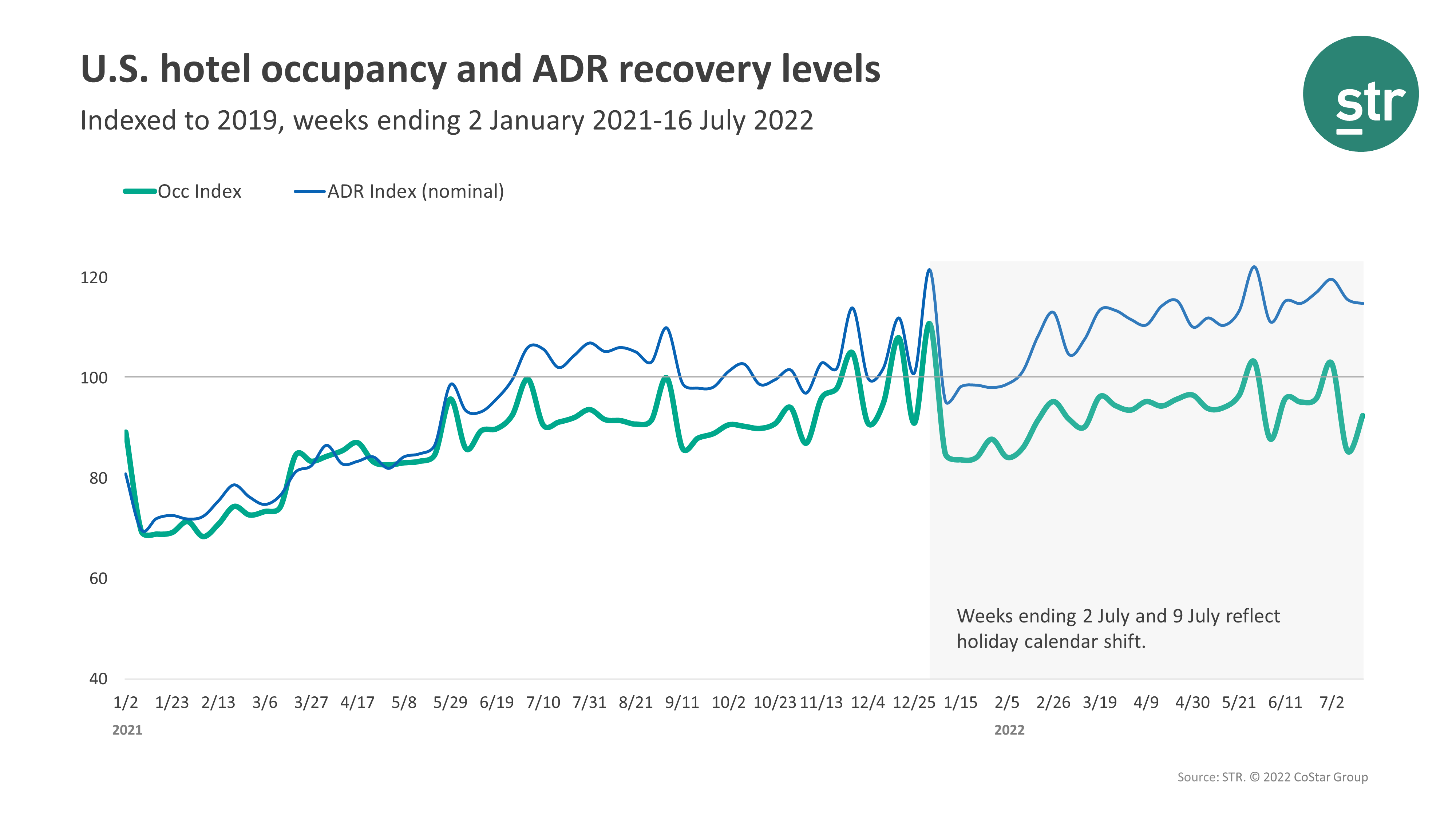 Hotel occupancy was 72 percent for the week ending July 16, up from 63.3 percent the week before and dropped 7.4 percent from 2019. ADR was $157.23 for the week, up from $153.71 the week before and increased 14.9 percent from three years ago. RevPAR reached $113.28 during the week, up from $97.37 the week before and increased 6.4 percent from 2019.